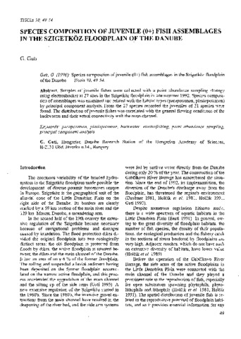 Guti G.: Species composition of juvenile (0+) fish assemblages in the Szigetköz floodplain of the Danube. In: Tiscia 30. pp. 49-54. (1996)