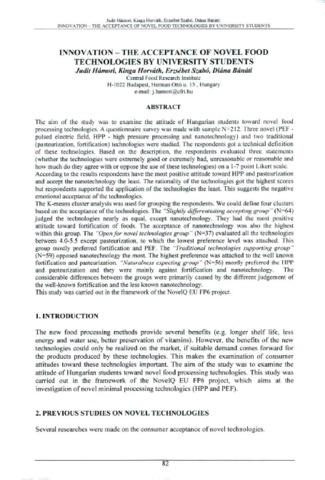 Hámori Judit: Innovation-the acceptance of novel food technologies by university students. In: Review of faculty of engineering : analecta technica Szegedinensia 2-3. pp. 82-87. (2010)