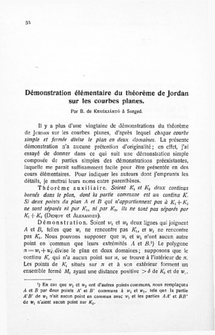Kerékjártó Béla: Démonstration élémentaire du théorème de Jordan sur les courbes planes. In: Acta litterarum ac scientiarum Regiae Universitatis Hungaricae Francisco-Josephinae : Sectio scientiarum mathematicarum, (5). pp. 56-59. (1932)