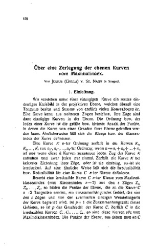 Szőkefalvi-Nagy Gyula: Über eine Zerlegung der ebenen Kurven vom Maximalindex. In: Acta litterarum ac scientiarum Regiae Universitatis Hungaricae Francisco-Josephinae : Sectio scientiarum mathematicarum, (8). pp. 136-146. (1937)