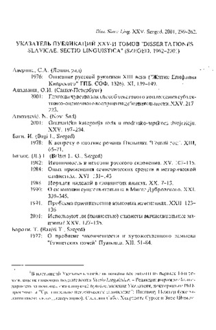 Ukazatel' publikacij XXV-I tomov "Disserationes Slavicae : Sectio Linguistica" : (Szeged, 1962-2001). In: Dissertationes slavicae. sectio linguistica, (25). pp. 239-262. (2001)