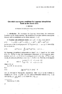 Vértesi Péter: One-sided convergence conditions for Lagrange interpolation based on the Jacobi roots. In: Acta scientiarum mathematicarum, (45). pp. 419-428. (1983)