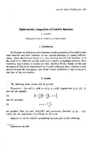 Szigeti Ferenc: Multivariable composition of Sobol'ev functions. In: Acta scientiarum mathematicarum, (48). pp. 469-476. (1985)