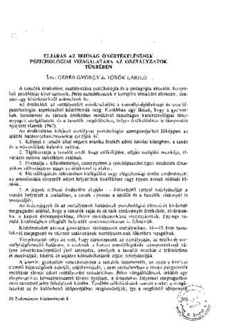 Geréb György; Török László: Eljárás az ifjúság önértékelésének pszichológiai vizsgálatára az osztályzatok tükrében. In: A Szegedi Tanárképző Főiskola tudományos közleményei 1. pp. 305-317. (1973)