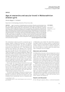 Bagga Amrita; Kulkarni Shaunak: Age at menarche and secular trend in Maharashtrian (Indian) girls. In: Acta biologica Szegediensis, (44) 1-4. pp. 53-57. (2000)