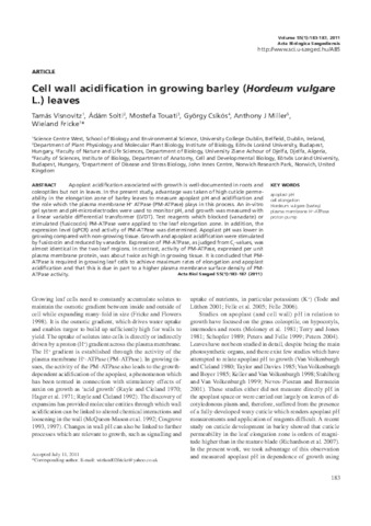 Visnovitz Tamás: Cell wall acidification in growing barley (Hordeum vulgare L.) leaves. In: Acta biologica Szegediensis, (55) 1. pp. 183-187. (2011)