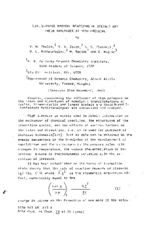 Megjegyzések: Bibliogr.: p. 68-69.; Ismertetett mű: V. M. Žulin-V. V. Zorin-S. S. Zlotskij-D. L. Rahmankulov-M. Bartok-A. Molnar: Radikal'nye prevraŝeniâ acetalej i ih analogov v židkoj faze proishodâŝih pod vysokim davleniem