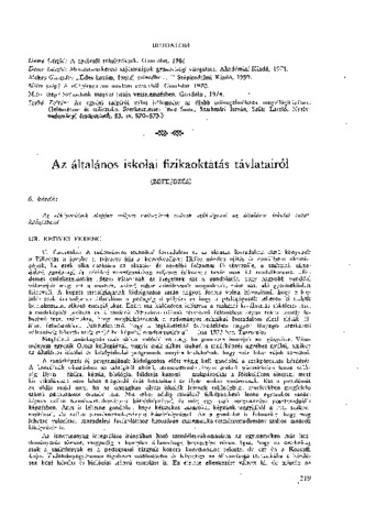 Kedves Ferenc: Az általános iskolai fizikaoktatás távlatairól : befejezés. In: Módszertani közlemények, (16) 4. pp. 219-224. (1976)
