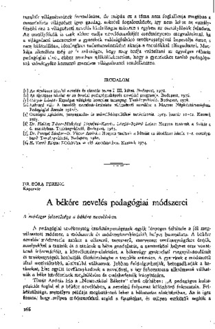 Bóra Ferenc: A békére nevelés pedagógiai módszerei. In: Módszertani közlemények, (26) 5. pp. 266-271. (1986)