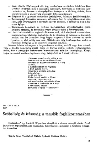 Cseh Béla: Szóbeliség és írásosság a tanulók foglalkoztatásában. In: Módszertani közlemények, (28) 1. pp. 13-17. (1988)