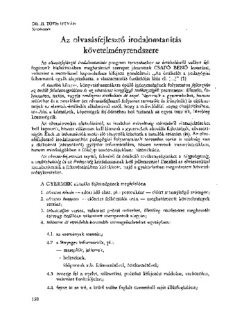 H. Tóth István: Az olvasásfejlesztő irodalomtanítás követelményrendszere. In: Módszertani közlemények, (32) 3. pp. 158-159. (1992)