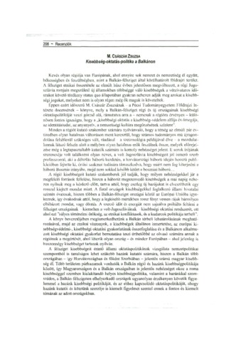 Zemniczky Nándor: M. Császár Zsuzsa: Kisebbség-oktatás-politika a Balkánon. In: Közép-európai közlemények, (5) 2. pp. 208-210. (2012)