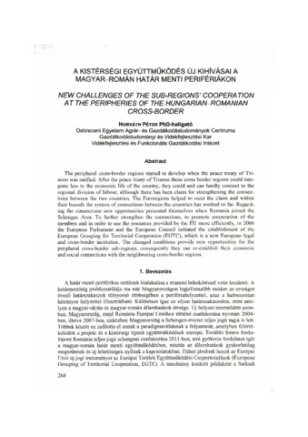 Horváth Péter: A kistérségi együttműködés új kihívásai a magyar-román határ menti perifériákon. In: A Virtuális Intézet Közép-Európa Kutatására közleményei, (2) 2-3. pp. 268-276. (2010)