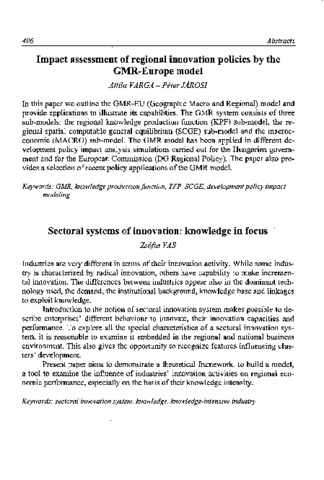 | Egyéb cím: | Regionális innováció-politikák hatáselemzése a GMR-Európa modell segítségével |