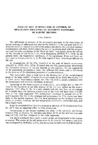 Bárány Ilona: Role of soil temperature in control of denudative processes of different exposuers in karstic regions. In: Acta Universitatis Szegediensis : acta geographica, (15). pp. 35-45. (1975)