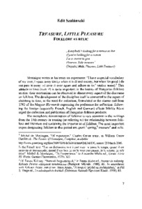 Szalánszki Edit: Treasure, little pleasure : folklore as a relic. In: Studies in modern philology and theory of literature, (10). pp. 7-16. (2006)