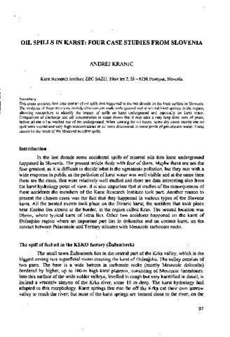 Kranjc Andrej: Oil spills in karst : four case studies from Slovenia. In: Acta Universitatis Szegediensis : acta geographica, (36). pp. 97-103. (1999)