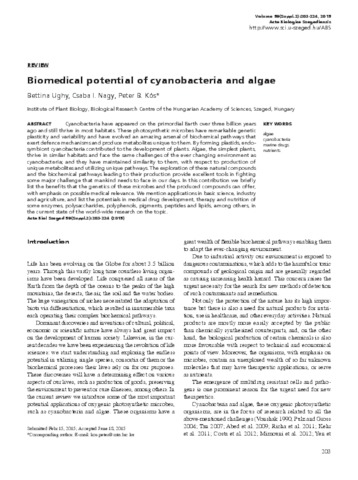 Ughy Bettina; Nagy Csaba István; Kós Péter B.: Biomedical potential of cyanobacteria and algae. In: Acta biologica Szegediensis, (59). pp. 203-224. (2015)