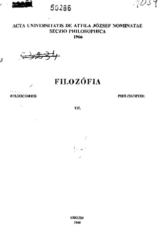 | Folyóirat/könyv/kiadvány címe: | Acta Universitatis Szegediensis : sectio philosophica |