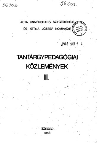 | Folyóirat/könyv/kiadvány címe: | Tantárgypedagógiai közlemények |