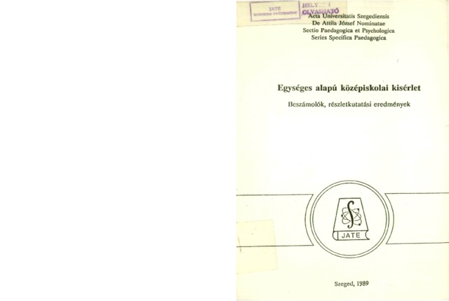 | Publication full: | Acta Universitatis Szegediensis de Attila József nominatae : Sectio paedagogica et psychologica : series specifica paedagogica |