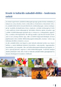 Kreatív és kulturális szabadidő-eltöltés - konferencia szekció. In: Egész-ség, (2) 1. p. 35. (2014)