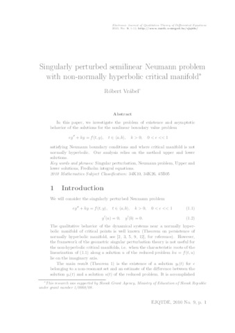 Vrábel Róbert: Singularly perturbed semilinear Neumann problem with non-normally hyperbolic critical manifold. (2010)