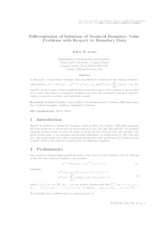 Lyons Jeffrey W.: Differentiation of solutions of nonlocal boundary value problems with respect to boundary data. (2011)