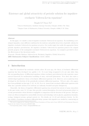 Li Dingshi and Xu Daoyi: Existence and global attractivity of periodic solution for impulsive stochastic Volterra-Levin equations. (2012)