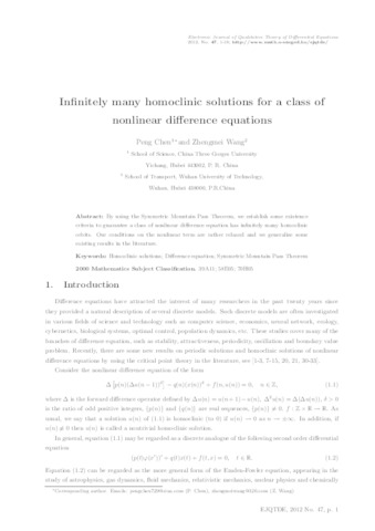 Chen Peng; Wang Zhengmei: Infinitely many homoclinic solutions for a class of nonlinear difference equations. (2012)