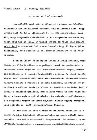 Maróti Andor; Sz. Várnagy Marianne: Az aktivizáló módszerekről. In: Andragógia - felnőttoktatás : összeállítás a TIT Szegedi Művelődéselméleti Nyári Egyetemén elhangzott előadásokból, (2). pp. 293-315. (1973)