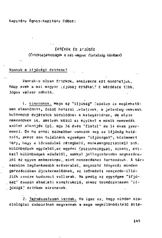 Kapitány Ágnes; Kapitány Gábor: Értékek és ifjúság : értéksajátosságok a mai magyar fiatalság körében. In: Társadalmi szerkezet - műveltség - deviancia : gyűjtemény a TIT Szegedi XV. Művelődéselméleti Nyári Egyetemének előadásaiból, (15). pp. 145-166. (1986)