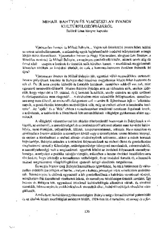 Szalma Natália: Mihail Bahtyin és Vjacseszlav Ivanov kultúrfilozófiájáról : Szilárd Léna könyve kapcsán. In: Szellemi tekintélyek és az ész diktátumai : az ontikus kultúrtörténet és fogadtatása, (8). pp. 136-140. (1996)