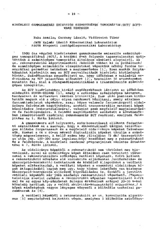 Kuba Attila; Csernay László; Vidákovich Tibor: Kísérleti gammakamerás emissziós számítógépes tomográfiai (ECT) software rendszer.