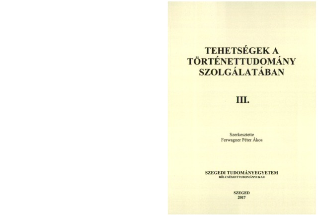 Tehetségek a történettudomány szolgálatában III. : történelem szakos hallgatók diákköri dolgozatai. ISBN 978-963-306-528-0, (2017)