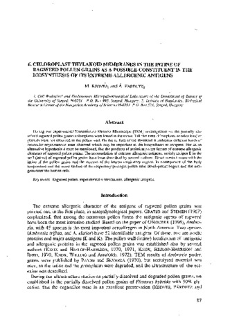 Kedves Miklós; Párdutz Árpád: Chloroplast thylakoid membranes in the intine of ragweed pollen grains as a Possible constituent in the biosynthesis of its extreme allergenic antigens. In: Plant cell biology and development, (12). pp. 87-92. (2000)