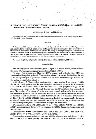 Kedves Miklós; Frey Krisztina; Imre Zsófia: LM and TEM investigations on partially degraded pollen grains of Chenopodium album. In: Plant cell biology and development, (14). pp. 39-48. (2002)