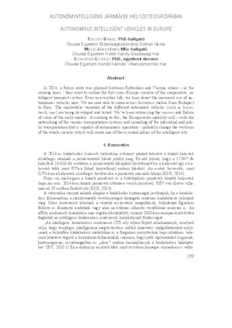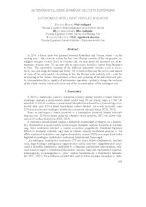 Tokody Dániel; Mezei János Imre; Schuster György: Autonóm intelligens járművek helyzete Európa. In: Köztes-Európa : társadalomtudományi folyóirat, (8) 1-2. pp. 199-206. (2016)