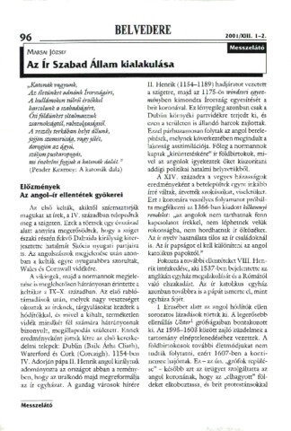 Marsai József: Az Ír Szabad Állam kialakulása. In: Belvedere Meridionale, (13) 1-2. pp. 96-103. (2001)