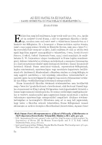 Az ész hatálya és határa : David Hume filozófiai relációelméletéről. In: Az ész, (10). pp. 82-94. (2012)