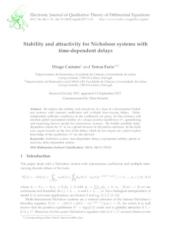 Caetano Diogo; Faria Teresa: Stability and attractivity for Nicholson systems with time-dependent delays. ISBN 1417 3875, (2017)