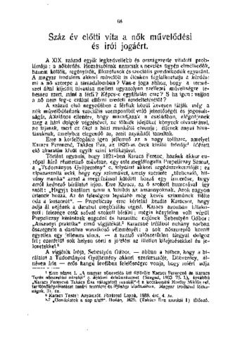 Evva Gabriella: Száz év előtti vita a nők művelődési és írói jogáért. In: Nevelésügyi szemle, (5) 3-4. pp. 68-74. (1941)