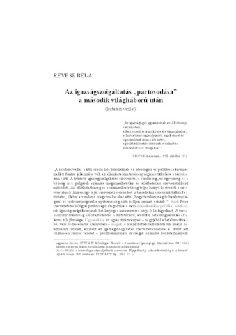 Révész Béla: Az igazságszolgáltatás "pártosodása" a második világháború után : kutatási vázlat. In: Acta Universitatis Szegediensis : acta juridica et politica, (79). pp. 543-550. (2016)