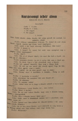 Kőhalmi Júlia: Karácsonyi fehér álom : [színdarab]. In: Gyakorlati pedagógia, (3) 9. pp. 565-569. (1937)
