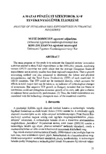 Máté Domicián; Kiss Zsuzsanna: A hazai pénzügyi szektorok K+F tevékenységének elemzése = Analysis of Hungarian R&D expenditures in financial industries. In: Taylor : gazdálkodás- és szervezéstudományi folyóirat, (8) 1. pp. 21-28. (2016)