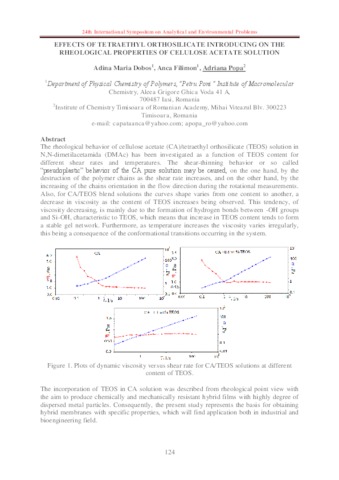 Dobos Adina Maria; Filimon Anca; Popa Adriana: Effects of tetraethyl orthosilicate introducing on the rheological properties of celulose acetate solution.