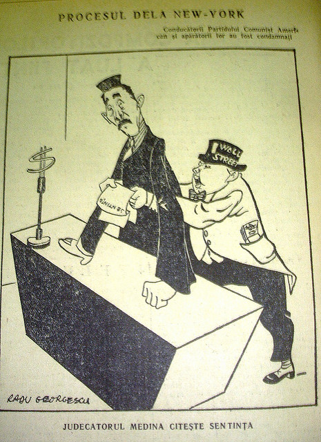 Fig. 43. Title: The New York Trial. Text: Judge Medina reads the sentence of the court.