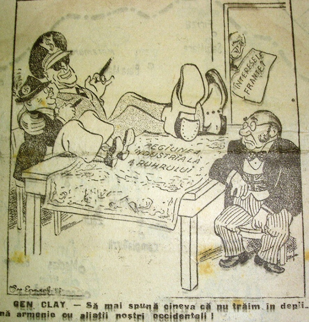 Fig. 19. Text: “General Clay: ‘Let’s see if somebody can say now that we don’t live in a perfect harmony with our Western allies”