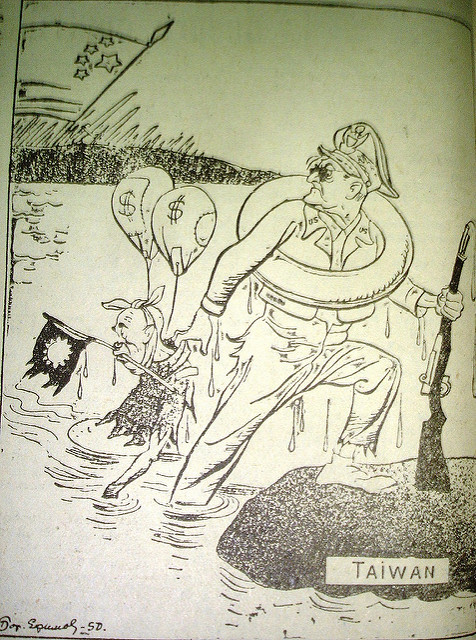 Another very powerful symbol (see its recurrence in the thematic classification below) is the representation of the dollar ($), present in a large number of cartoons, independent or in combination with other US symbols (Wall Street, President Truman, the cowboy, the Statue of Liberty etc.), when the message aims to be more eloquent.