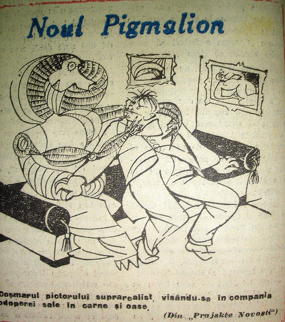 Fig. 12. Title: The New Pygmalion. Text: “The nightmare of a surrealist painter, dreaming of himself accompanied by his flesh and bones muse”.